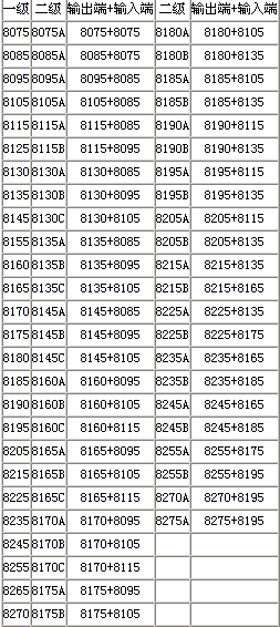機型號列表: