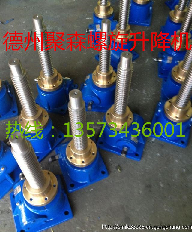 SWL絲桿升降機又稱QWL升降機廣泛應(yīng)用于機械、冶金、建筑、水利設(shè)備等行業(yè),具有起升、下降及借助輔件推進(jìn)、翻轉(zhuǎn)及各種高度位置調(diào) 整等諸多功能.SWL絲桿升降機是一種基礎(chǔ)起重部件,具有結(jié)構(gòu)緊湊、體積小、重量輕、動力源廣泛、無噪音、安裝方便、使用靈活、功能多、配套形式多、 可靠性高、使用壽命長等許多優(yōu)點。可以單臺或組合使用,能按一定程序準(zhǔn)確地控制調(diào)整提升或推進(jìn)的高度,可以用電動機或 其他動力直接帶動,也可以手動。SWL絲桿升降機有不同的結(jié)構(gòu)形式和裝配形式,且提升高度可按用戶的要求定制。蝸輪絲杠升降機可以自鎖。