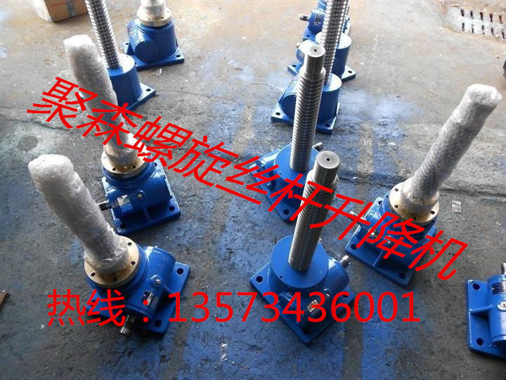 升降機按結(jié)構(gòu)型式分為:1型-絲杠同時作旋轉(zhuǎn)運動和軸向移動;2型-絲杠作旋轉(zhuǎn)運動。絲杠上的螺母作軸向移動。