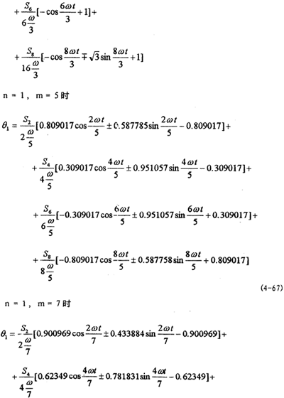 式中θ1為(4-68)式。以上各式中上排符號對應正