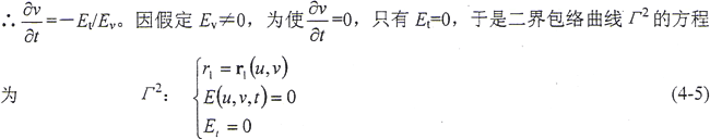兩偏導(dǎo)數(shù)不能同時(shí)為零。因?yàn)槿绻瑫r(shí)為零,說明包絡(luò)條件中沒有變數(shù)u、v,這時(shí)t只能等于常數(shù),代入第一式,只能得到曲面族中的某一曲面,而不存在包絡(luò)線。