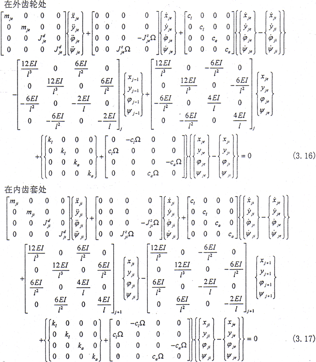 這樣就得到了第j個(gè)結(jié)點(diǎn)(外齒輪、內(nèi)齒套)處的彎曲運(yùn)動(dòng)微分方程。