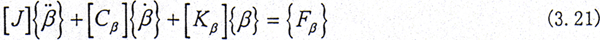 [J],[Cβ],[Kβ]分別為系統(tǒng)的轉(zhuǎn)動(dòng)慣量陣,扭轉(zhuǎn)阻尼力矩和扭轉(zhuǎn)剛度陣;
